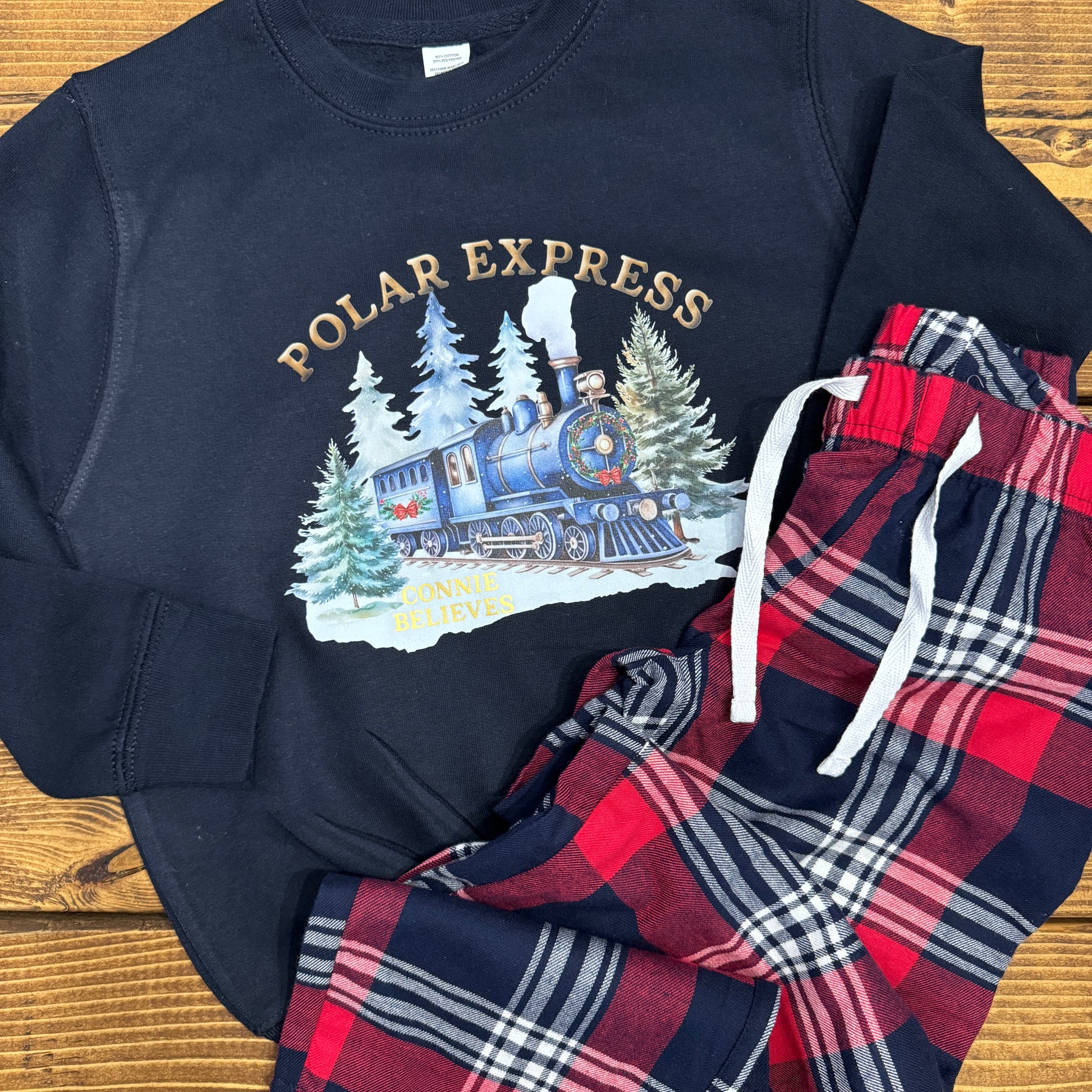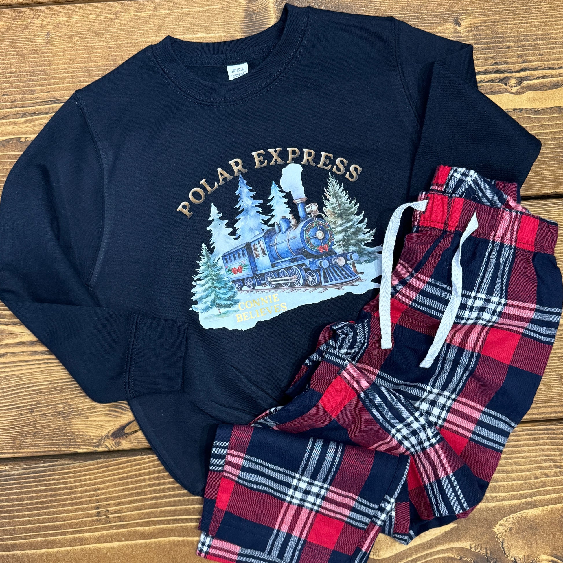Personalised Christmas Family Polar Express Sweatshirt Tartan PJ's