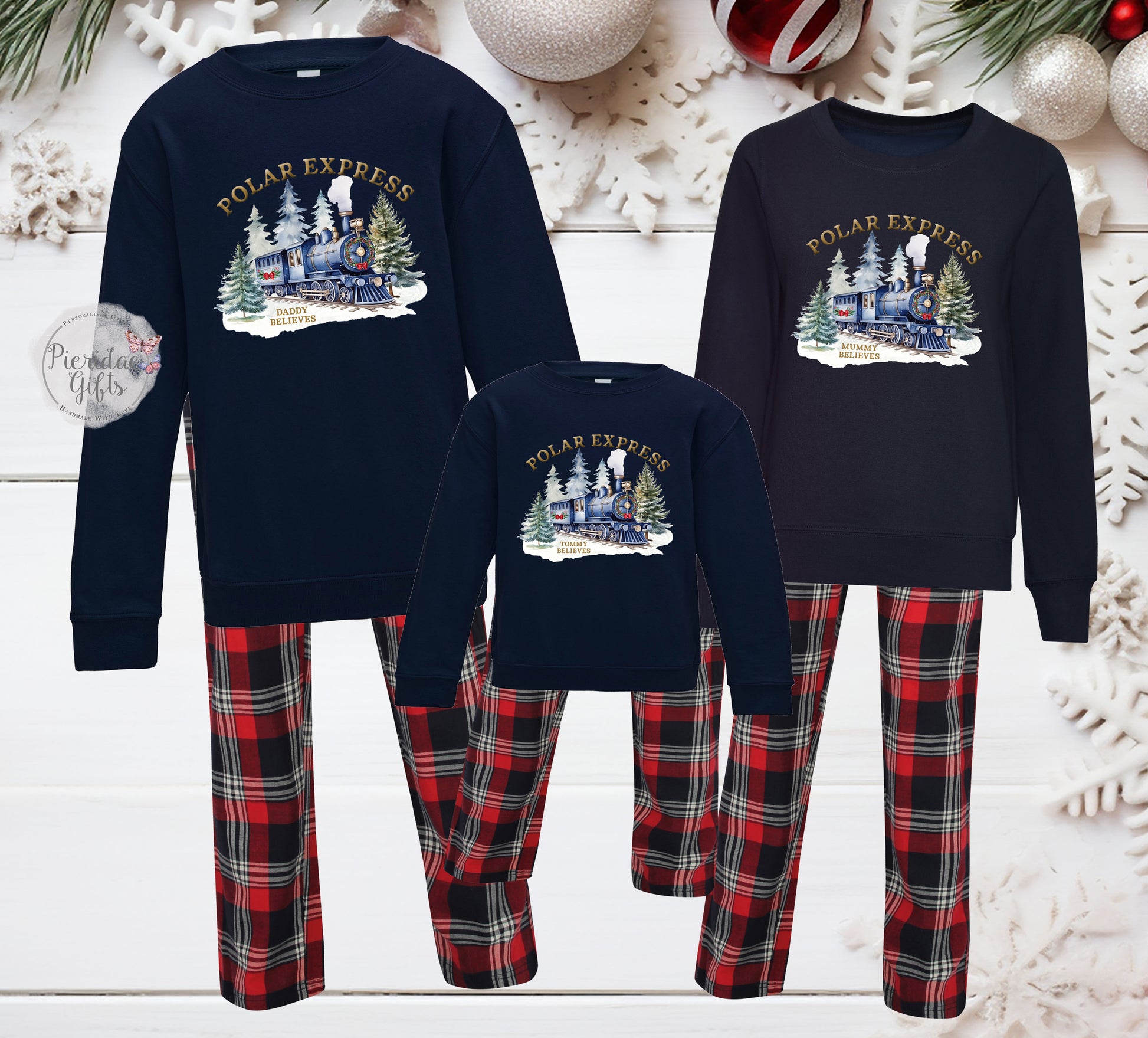 Cute matching Christmas PJ's. All on board the Polar Express with your personalised Christmas Polar Express PJ's. Get right in the spirit.
