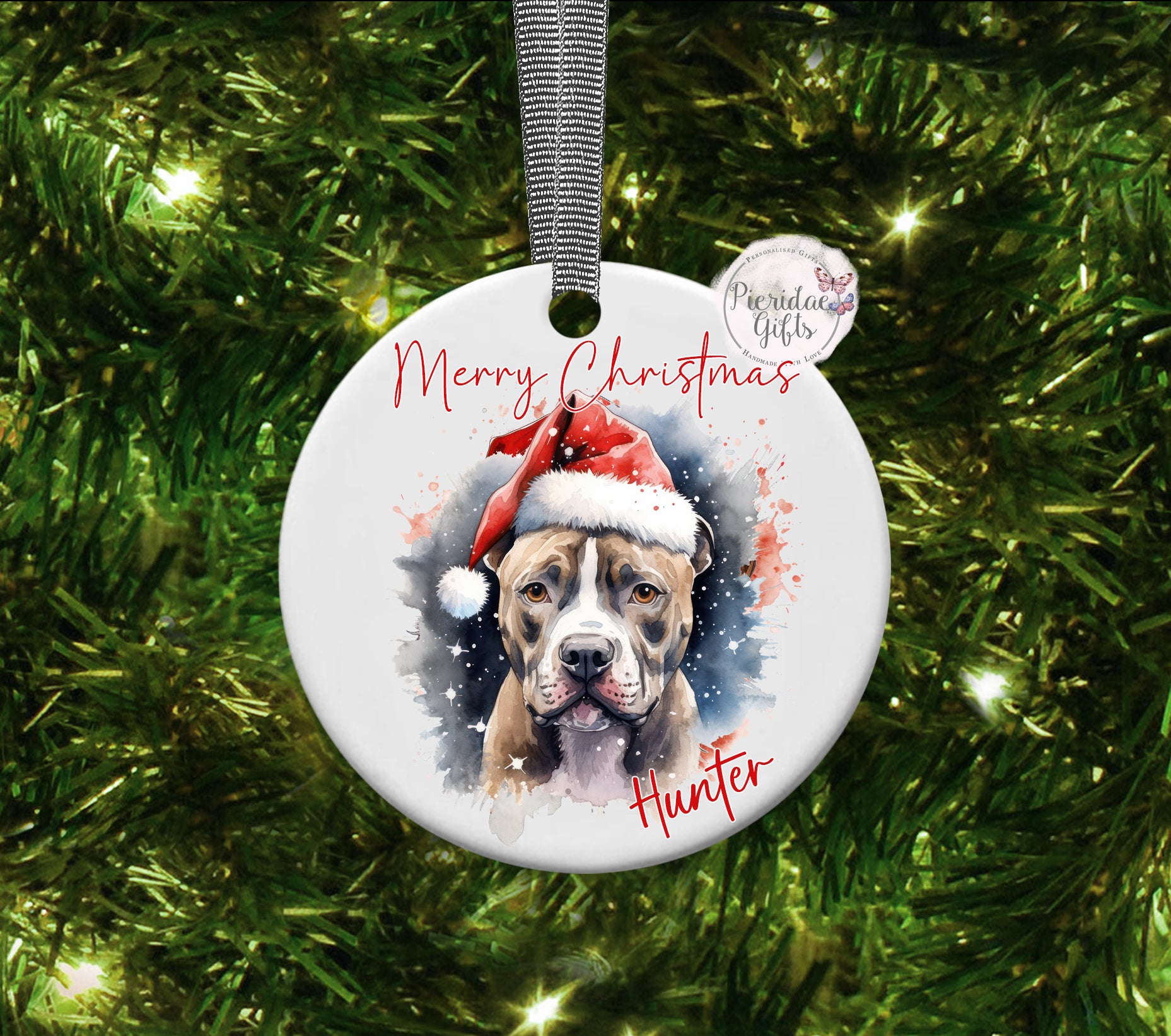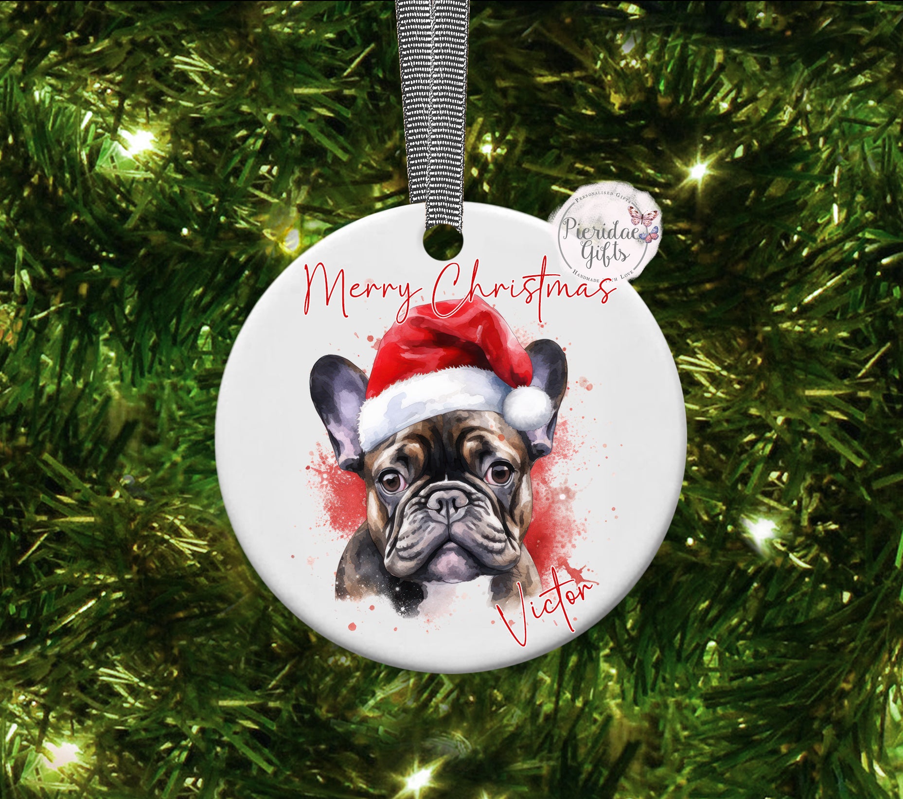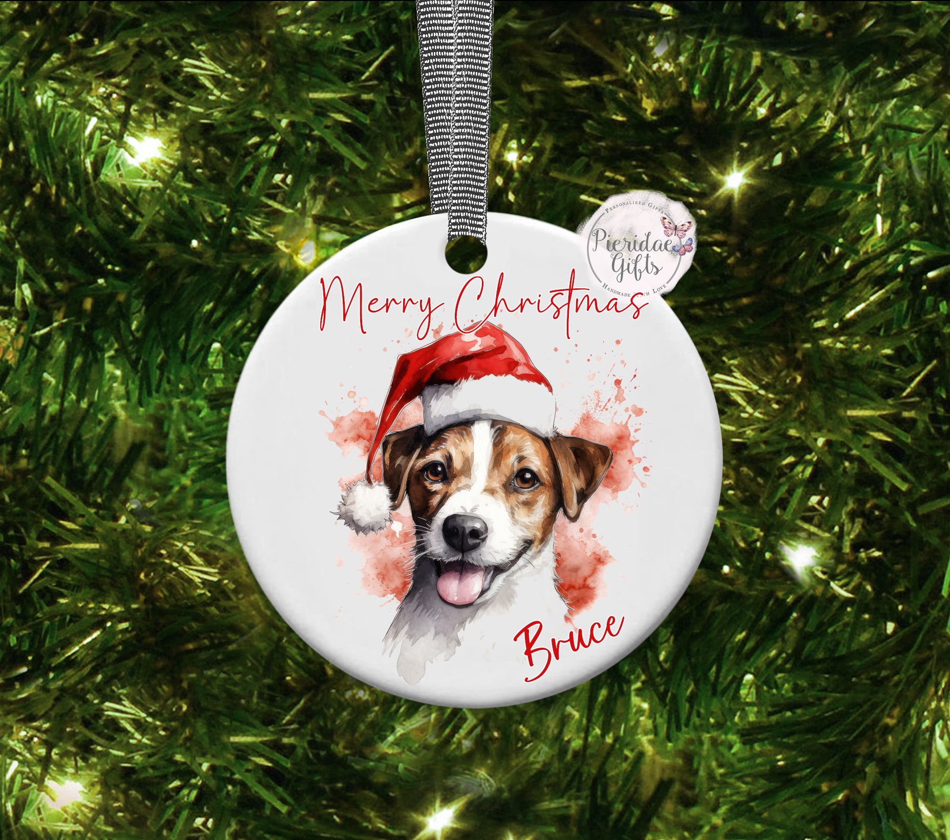 As there are too many breeds to list for a drop down menu, please let us know in the personalisation box the breed of dog you require printing along with their name. 'Merry Christmas' will come as standard.