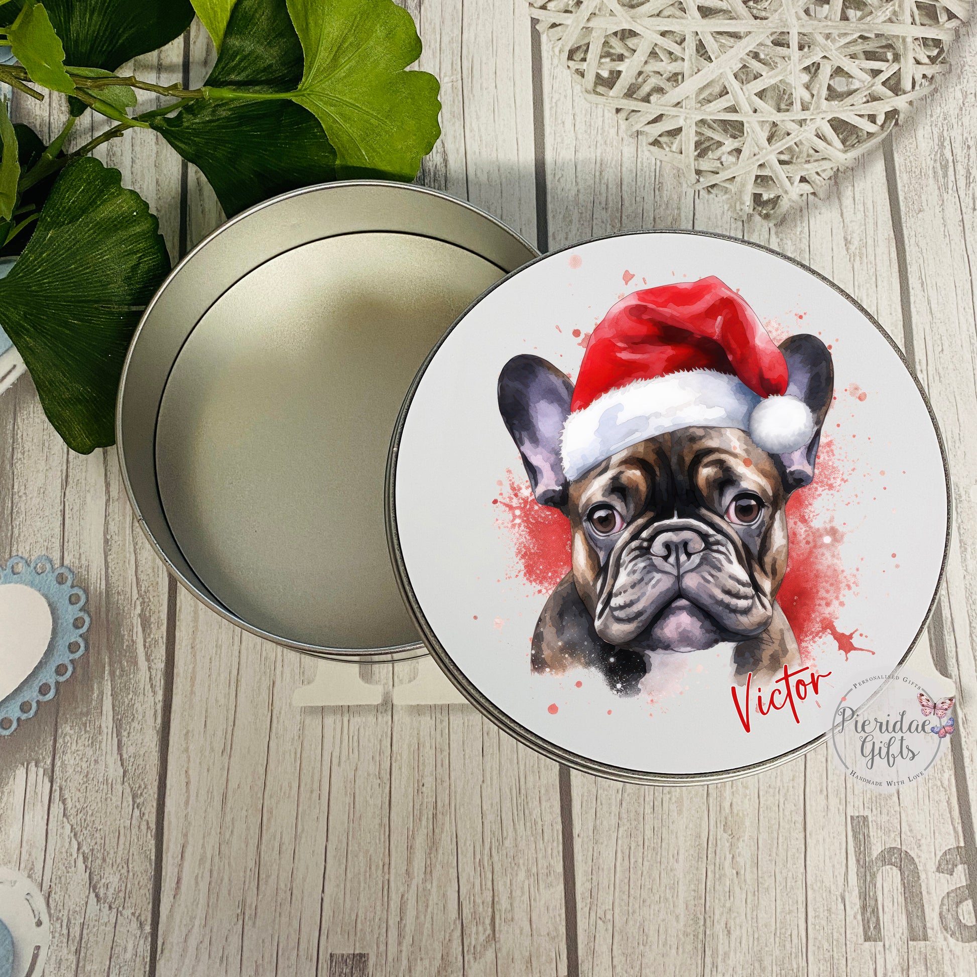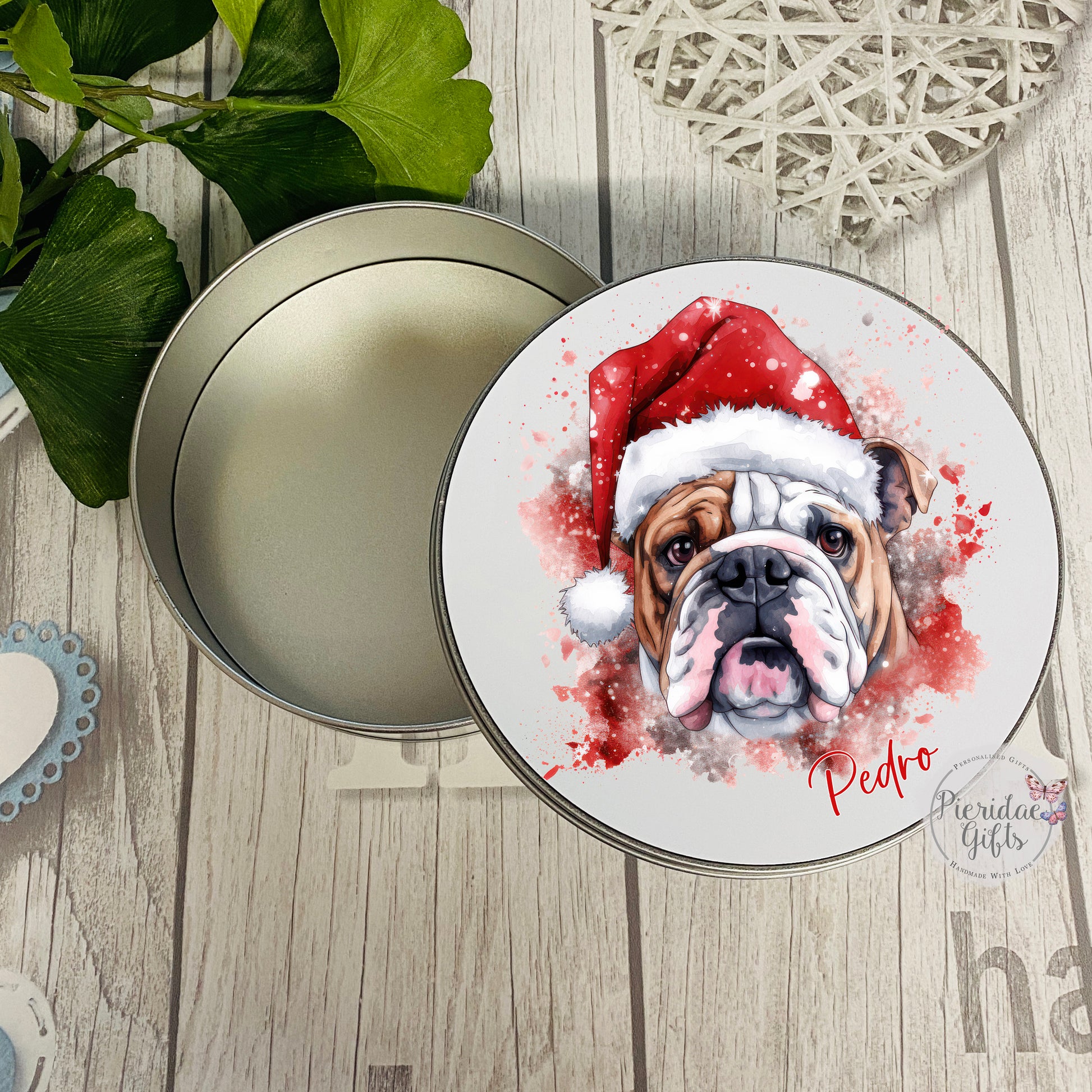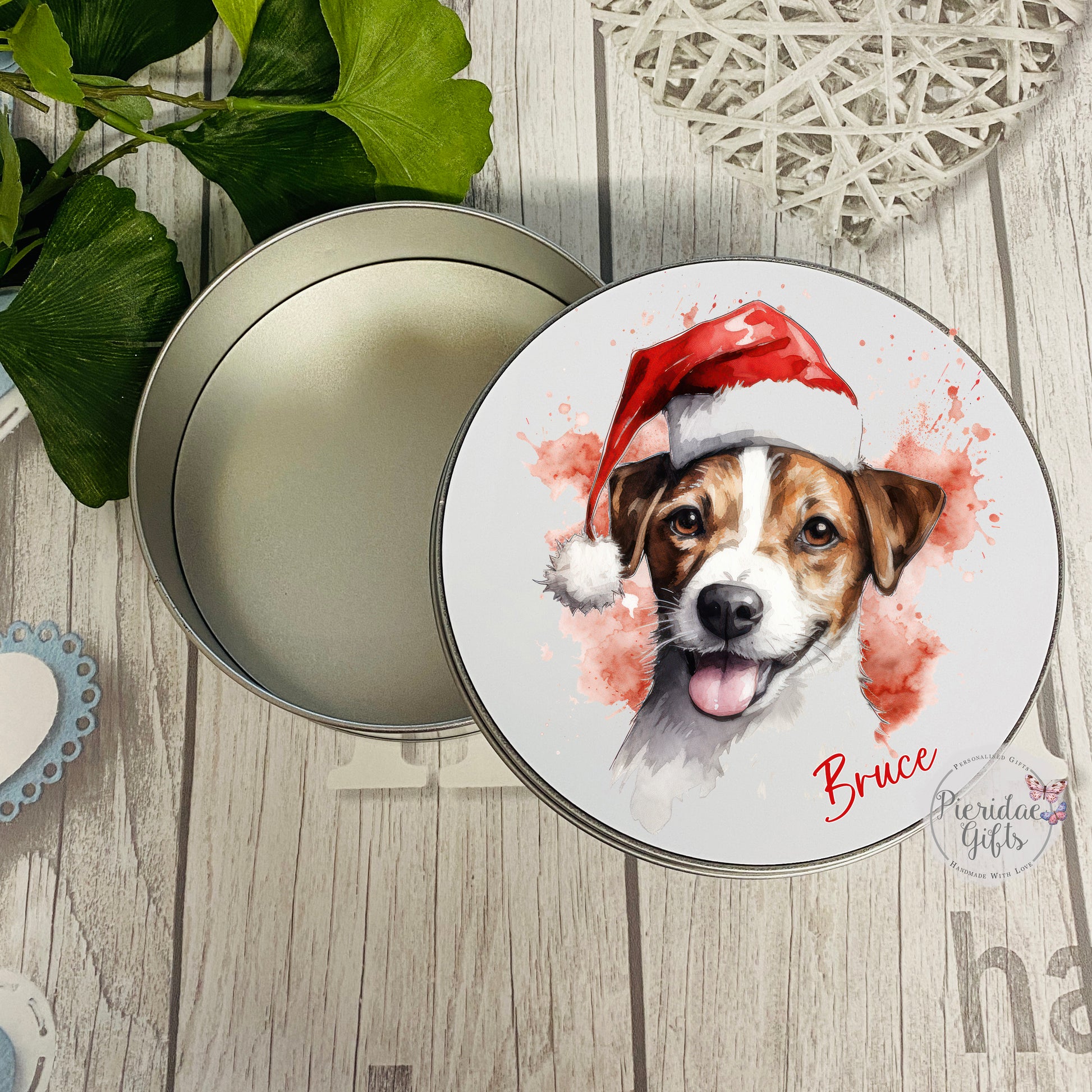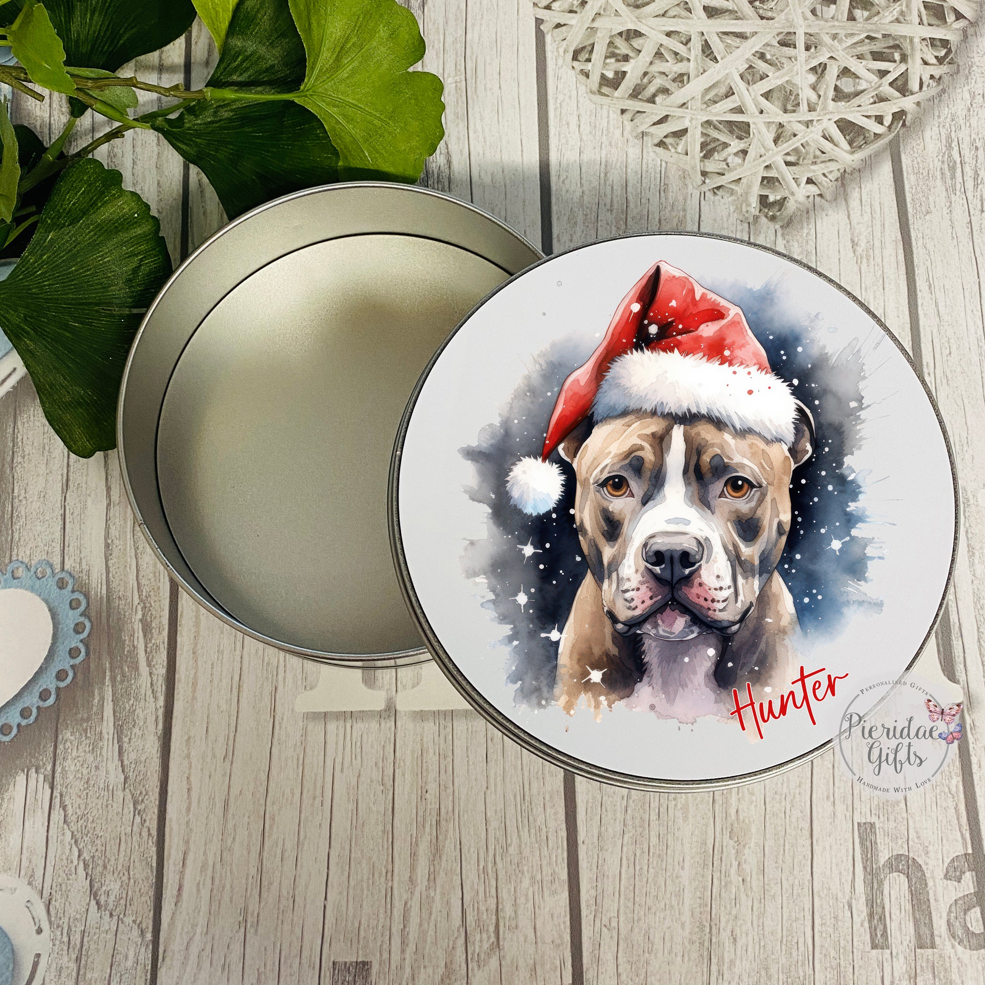 Personalised Christmas Pet Santa Treat Tin (Other breeds available)