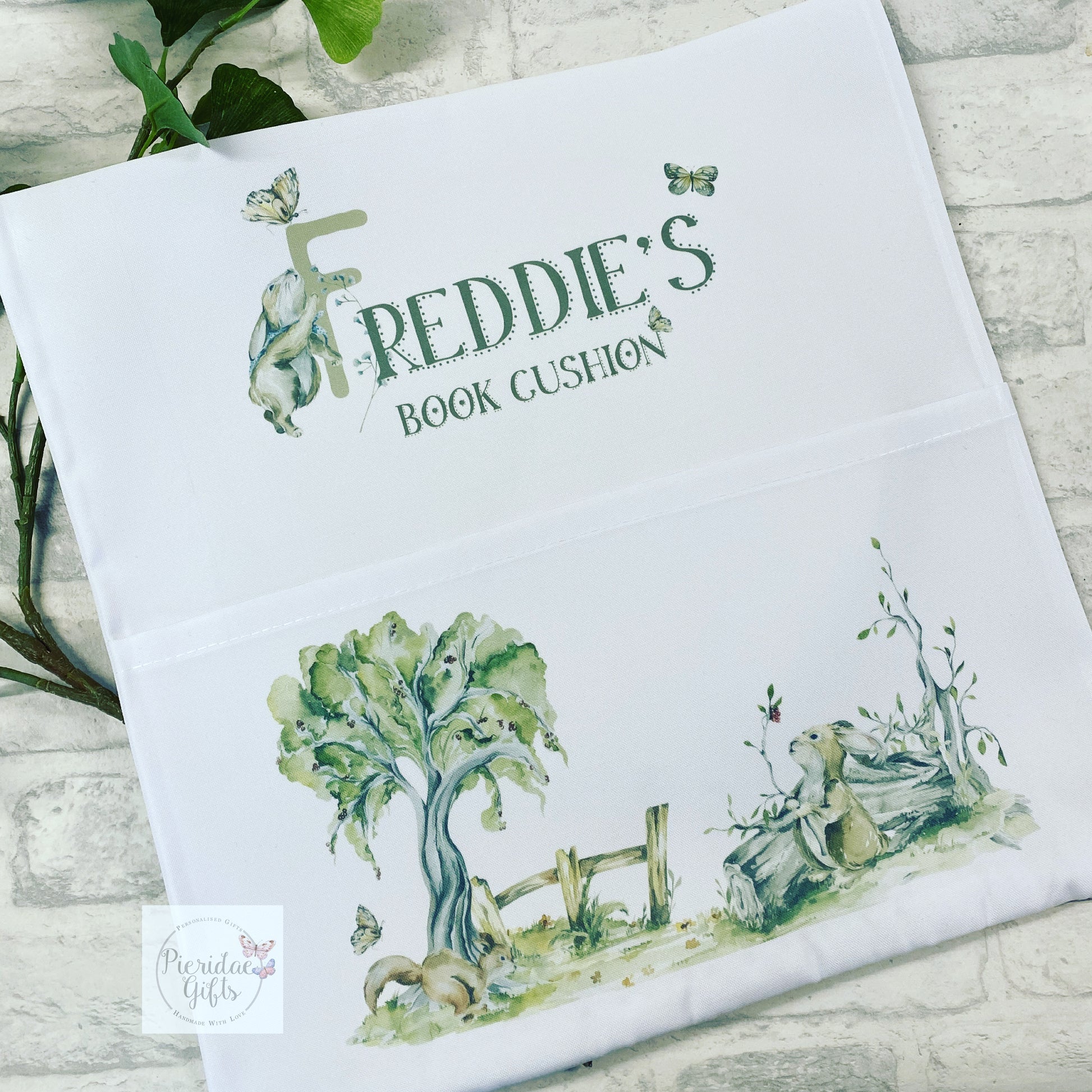 Please let us know the name you would like us to print in the box provided. Please type in the name ONLY. We will add the rest of the sentence after the name ‘ ‘s book cushion ’.